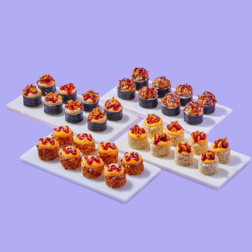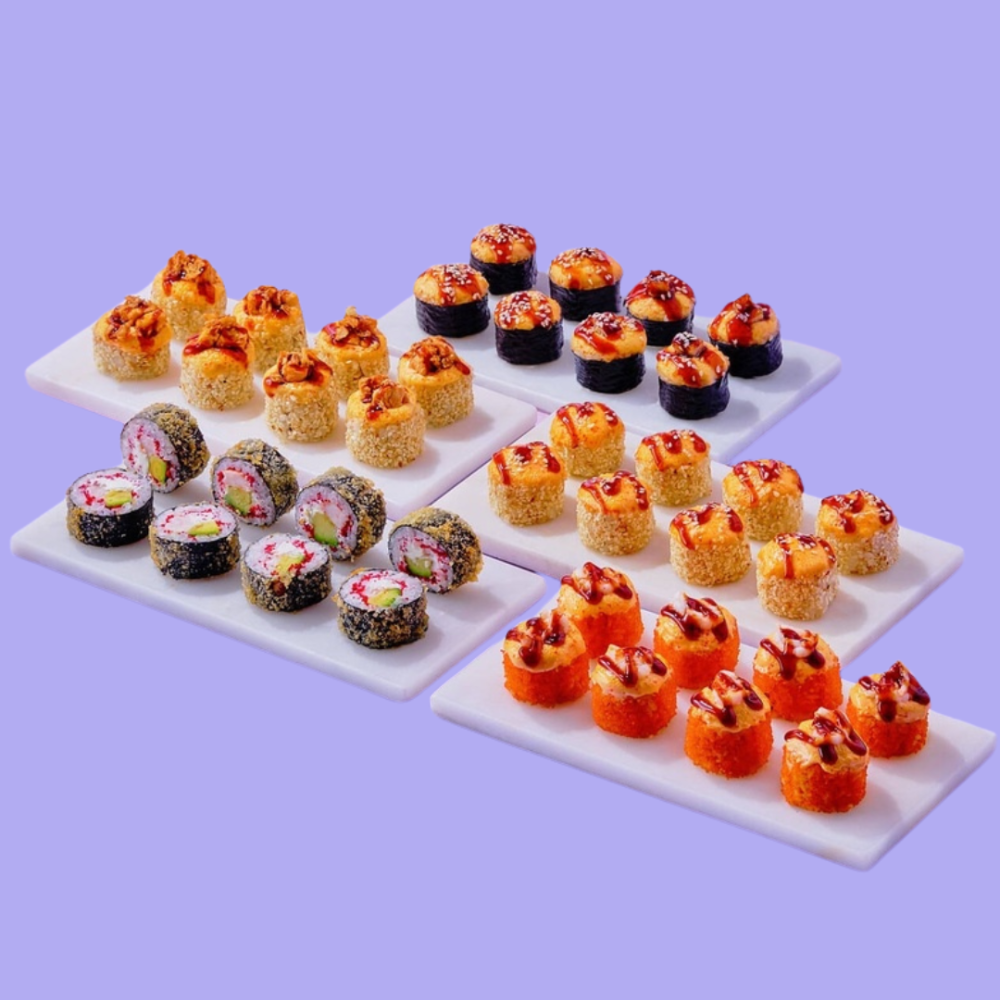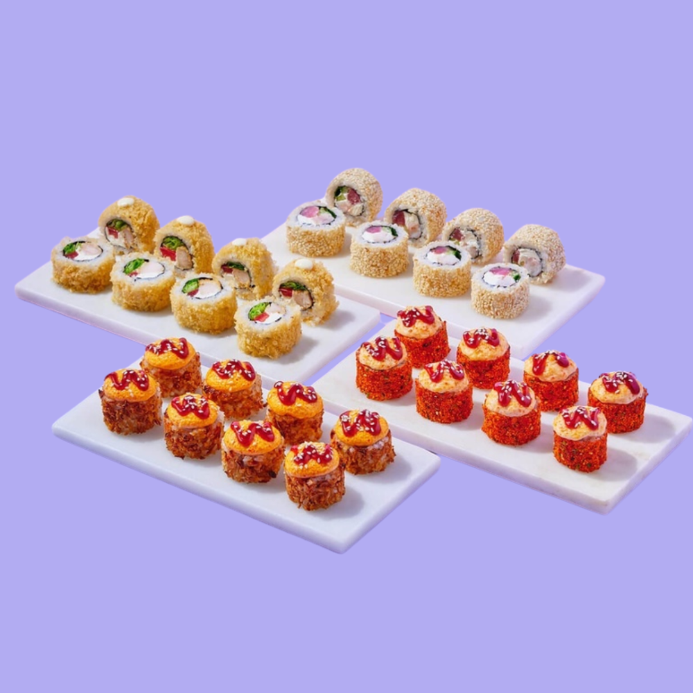 Запечений зі смаженим лососем, Запечений з мідіями, Цезар рол, Краб в кунжуті