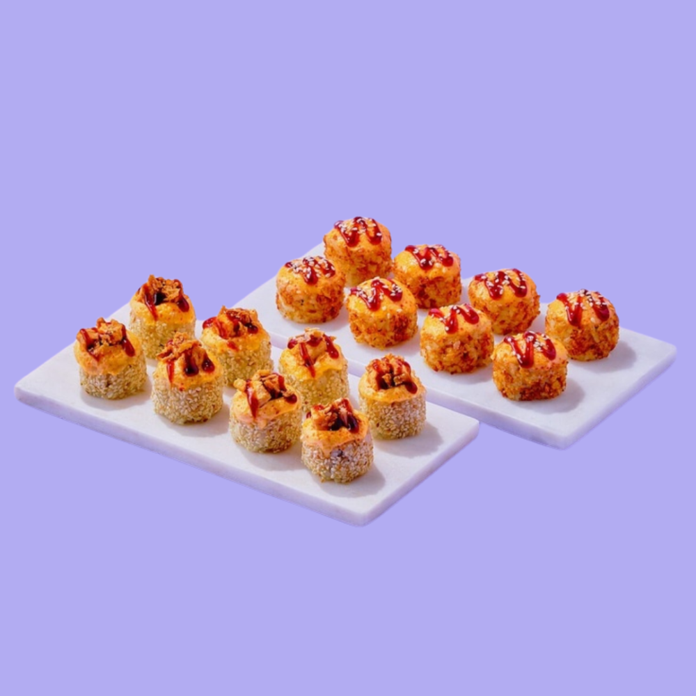 Темпура курочка-манго, Запечений з морським окунем, Запечений з лососем, Запечений з крабом, Запечений з тигровою креветкою